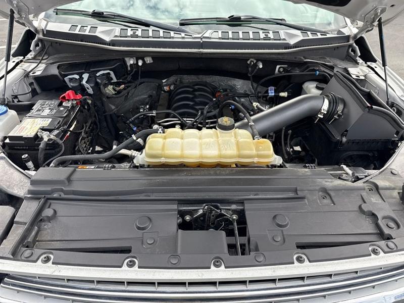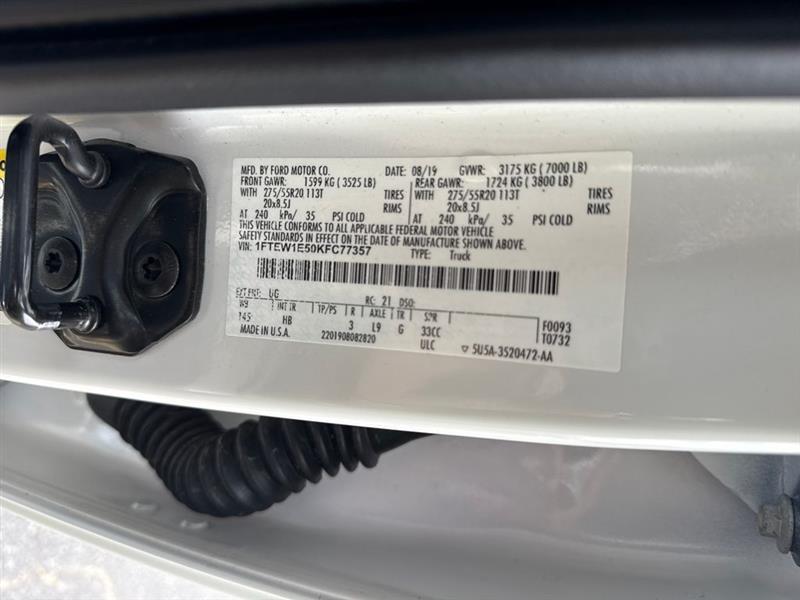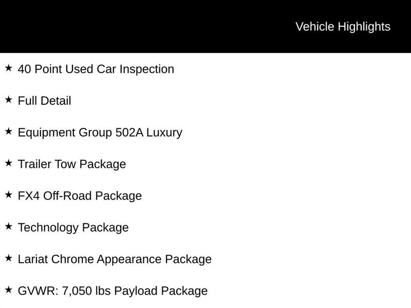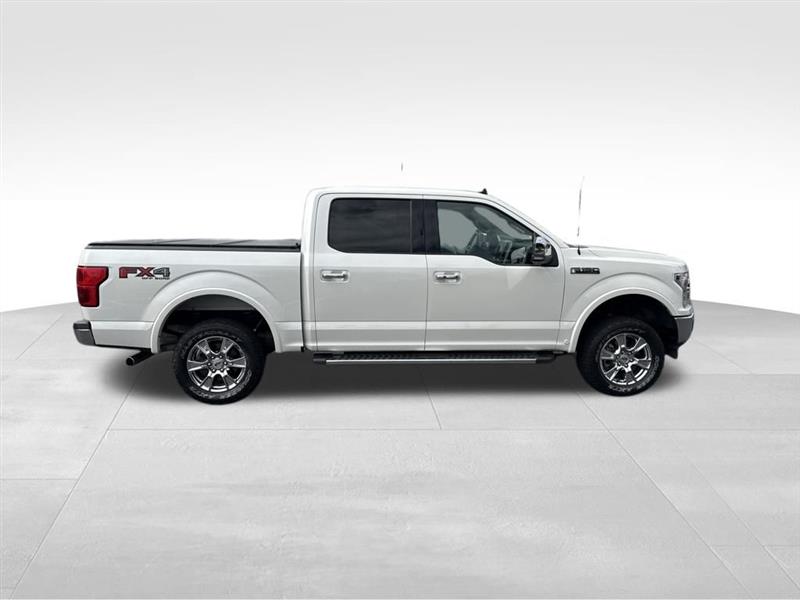 White Platinum 2019 Ford F-150 Lariat 4WD 10-Speed Automatic 5.0L V8 40 Point Used Car Inspection, Full Detail, F-150 Lariat, 4D SuperCrew, 5.0L V8, 10-Speed Automatic, 4WD, White Platinum, Black Leather, 110V/400W Outlet, 2nd Row Heated Seats, 4x4 FX4 Off-Road Bodyside Decal, Active Park Assist, Alloy wheels, AppLink/Apple CarPlay and Android Auto, Auto High-beam Headlights, BLIS Blind Spot Information System, Chrome 2-Bar Grille w/4 Minor Bars, Chrome Angular Step Bars, Chrome Door & Tailgate Handles w/Body-Color Bezel, Chrome Skull Caps on Exterior Mirrors, Class IV Trailer Hitch Receiver, Engine Oil Cooler, Equipment Group 502A Luxury, Front dual zone A/C, Front fog lights, FX4 Off-Road Package, GVWR: 7,050 lbs Payload Package, Heated front seats, Heated Steering Wheel, Hill Descent Control, Lane-Keeping System, Lariat Chrome Appearance Package, Leather-Trimmed Bucket Seats, LED Sideview Mirror Spotlights, Off-Road Tuned Front Shock Absorbers, Power Glass Sideview Mirr w/Chrome Skull Caps, Power Tilt/Telescoping Steering Column w/Memory, Pro Trailer Backup Assist, Quad Beam LED Headlamps & LED Taillamps/Fog Lamps, Radio: B&O Sound System by Bang & Olufsen, Rain-Sensing Wipers, Remote keyless entry, Remote Start System w/Remote Tailgate Release, Reverse Sensing System, Single-Tip Chrome Exhaust, Technology Package, Trailer Tow Package, Tray Style Floor Liner, Twin Panel Moonroof, Universal Garage Door Opener, Upgraded Front Stabilizer Bar, Wheels: 18" Chrome-Like PVD, Windshield Wiper De-Icer.