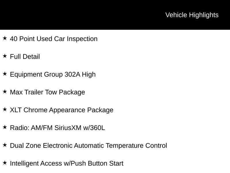 Antimatter Blue Metallic 2022 Ford F-150 4WD 10-Speed Automatic 3.5L PowerBoost Full-Hybrid V6 40 Point Used Car Inspection, Full Detail, 4D SuperCrew, 3.5L PowerBoost Full-Hybrid V6, 10-Speed Automatic, 4WD, Antimatter Blue Metallic, Black Cloth, 10-Way Power Driver & Passenger Seats, 2-Bar Style Grille w/Chrome 2 Minor Bars, 8" Productivity Screen in Instrument Cluster, Auto-Dimming Rear-View Mirror, Bright Polished Step Bars, Chrome Door & Tailgate Handles w/Body-Color Bezel, Chrome Single-Tip Exhaust, Class IV Trailer Hitch Receiver, Dual Zone Electronic Automatic Temperature Control, Equipment Group 302A High, Extended Range 36 Gallon Fuel Tank, Heated Front Seats, Integrated Trailer Brake Controller, Intelligent Access w/Push Button Start, Leather-Wrapped Steering Wheel, LED Reflector Headlamps, LED Sideview Mirror Spotlights, Max Trailer Tow Package, Onboard 400W Outlet, Power Glass Heated Sideview Mirrors, Pro Trailer Backup Assist, Radio: AM/FM SiriusXM w/360L, Rear Under-Seat Storage, Remote Start System w/Remote Tailgate Release, SecuriCode Drivers Side Keyless-Entry Keypad, SYNC 4 w/Enhanced Voice Recognition, Wheels: 18" Chrome-Like PVD, XLT Chrome Appearance Package, Zone Lighting.
