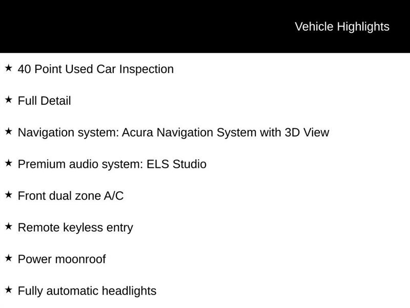 Liquid Carbon Metallic 2023 Acura RDX Technology Package FWD 10-Speed Automatic 2.0L 16V DOHC 40 Point Used Car Inspection, Full Detail, RDX Technology Package, 4D Sport Utility, 2.0L 16V DOHC, 10-Speed Automatic, FWD, Ebony Leather, Alloy wheels, Apple CarPlay/Android Auto, Delay-off headlights, Front dual zone A/C, Fully automatic headlights, Garage door transmitter: HomeLink, Heated door mirrors, Heated front seats, Navigation system: Acura Navigation System with 3D View, Power moonroof, Premium audio system: ELS Studio, Remote keyless entry, Speed control.